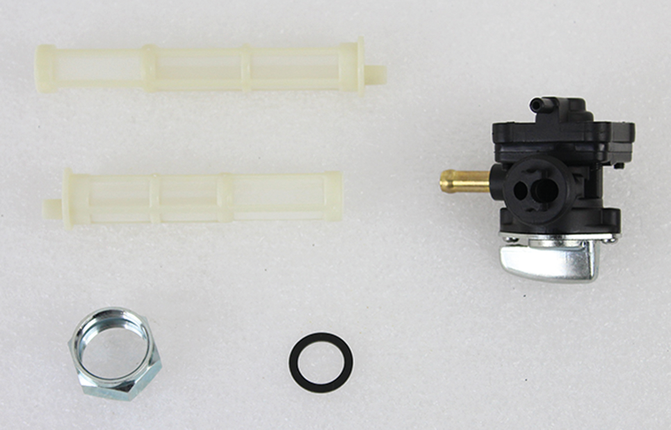 Rubinetto benzina carburante con depressore per Touring con carburatore dal 1994 al 2001, Dyna dal 1995 al 2001, Softail dal 1995 al 2001 e FXR dal 1999 al 2000. Ha l’uscita a sinistra (OEM 61338-94D)